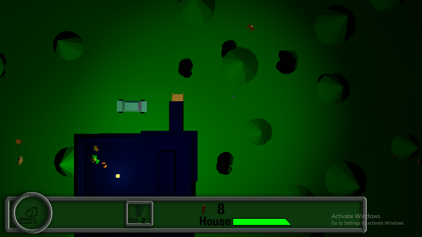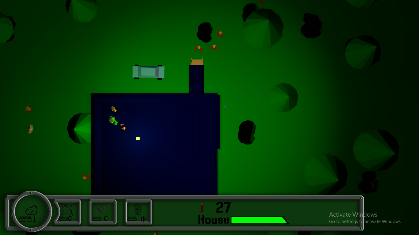 A top-down, low poly shooter. Choose between the different weapons and try to hold back the zombies waves.